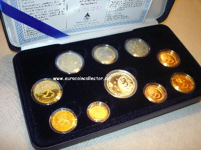 Enthält zu den 8 Münzen von 1 Cent bis 2 Euro zusätzlich einen Goldtokken